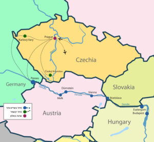 Сегодня мы отправимся в курортный город Карловы Вары, один из самых известных в мире оздоровительных курортов на протяжении веков. Мы прогуляемся среди королевских колоннад (портиков, колонн в фойе зданий) в классическом и барочном стилях, по главной пешеходной улице и мимо роскошных отелей, и почувствуем атмосферу дворянства XIX века. Этот город также был местом проведения двух сионистских конгрессов в начале XX века (1921, 1923). Во второй половине дня мы прибудем на корабль в Пассау, поднимемся на борт, получим свои каюты и немного отдохнем. Вечером мы встретимся за ужином с капитаном корабля, а сегодня вечером отправимся в Диренштайн.