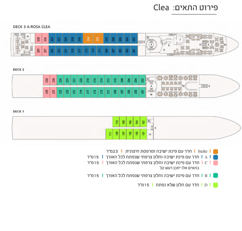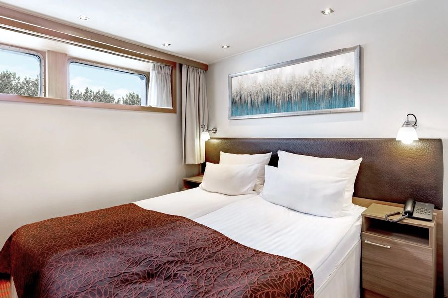 • Видовые Каюты: На средней и верхней палубах каюты оснащены французскими окнами, которые полностью открываются, стирая границу между вами и великолепными пейзажами.