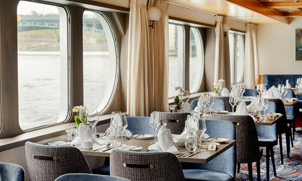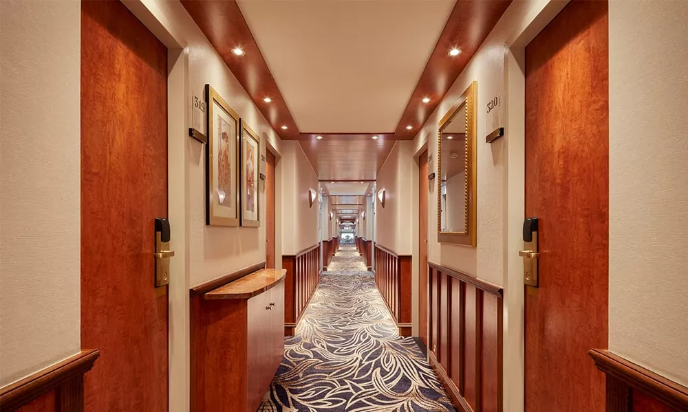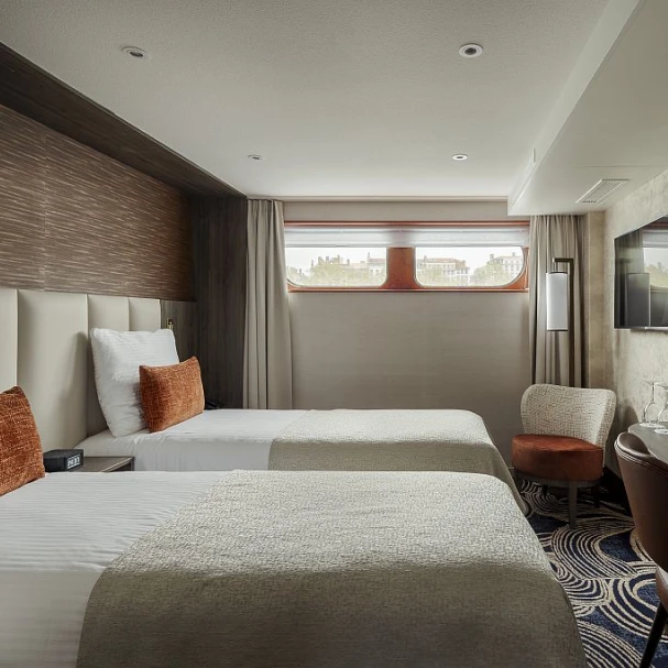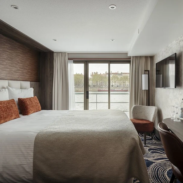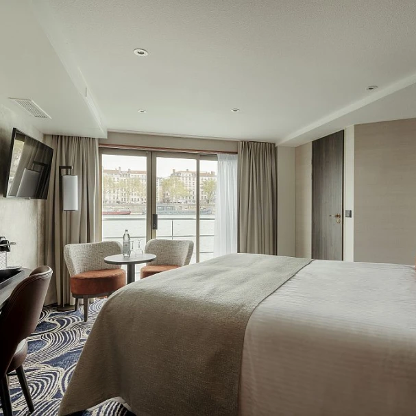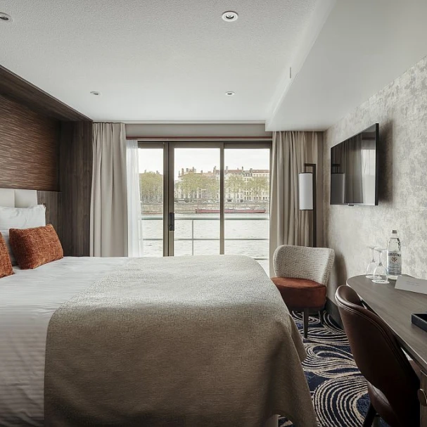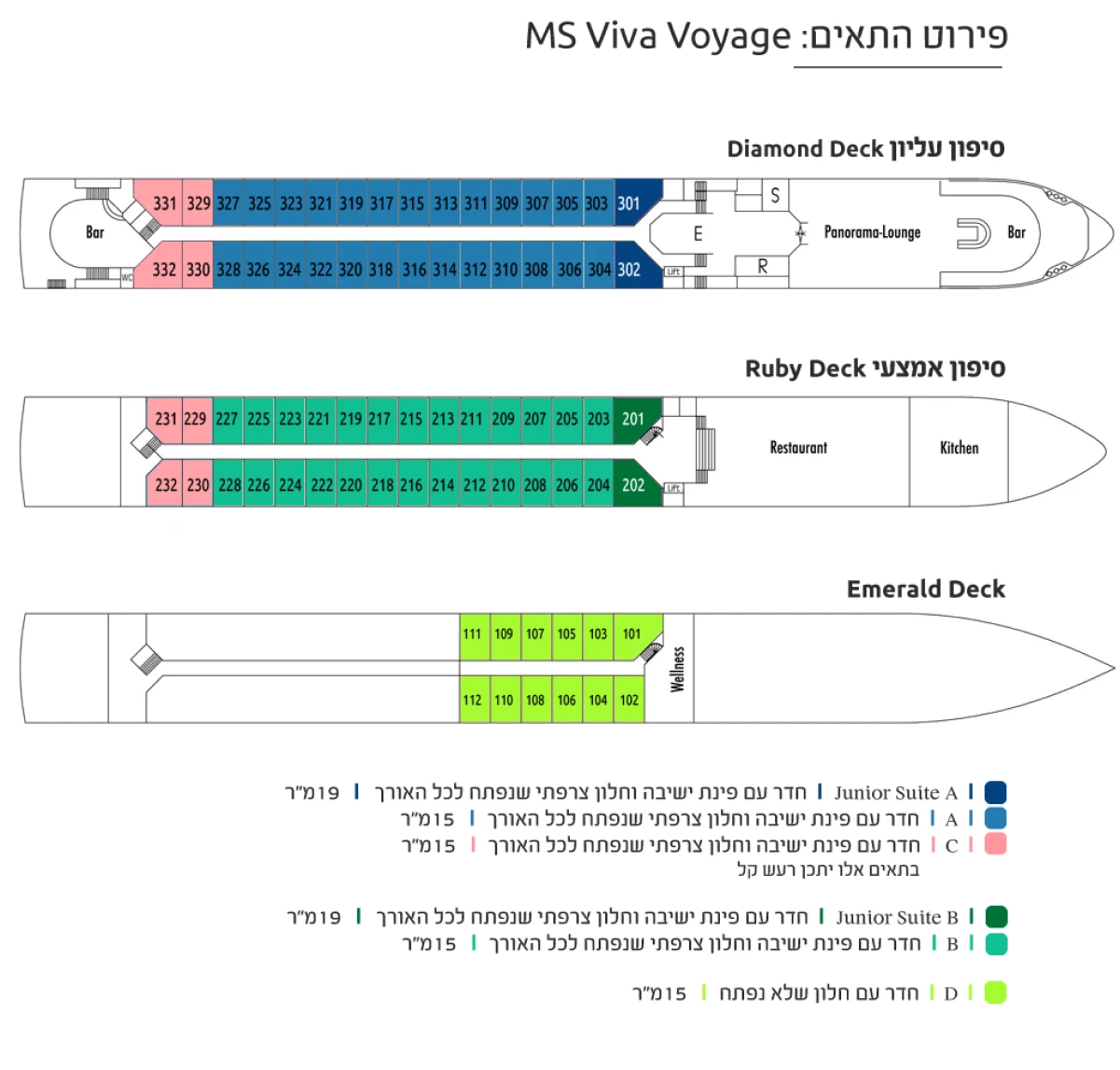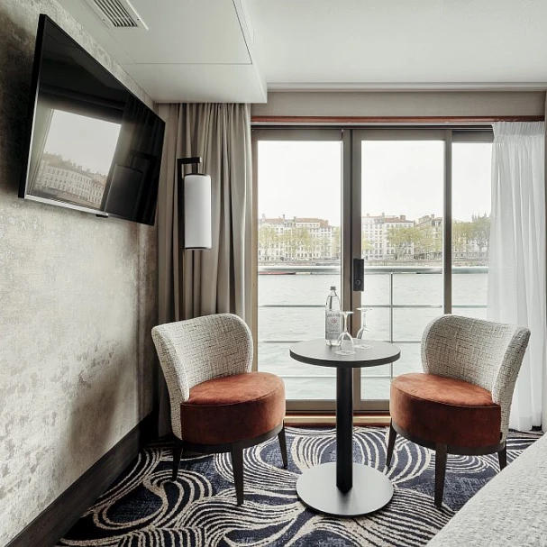 MS VIVA VOYAGE — это 4-звездочный речной круизный лайнер, прошедший комплексную реконструкцию в 2022 году. Судно предлагает 74 роскошных каюты, расположенных на 3 палубах, и рассчитано на 154 пассажира. Дизайн судна элегантный и современный, оно предлагает разнообразные удобства, включая ресторан с панорамными окнами, лаунж, бар, оздоровительный центр со спа-салоном и сауной, паровой баней и джакузи, солнечную палубу с затененной зоной и сувенирный магазин. На судне есть лифт, соединяющий среднюю и верхнюю палубы; на солнечную палубу нужно подняться примерно по 12 ступеням, а на нижнюю — спуститься по 6 ступеням. Каюты и люксы на верхней и средней палубах имеют французский балкон с панорамным окном. Все каюты оснащены кондиционером, сейфом, спутниковым телевидением, полностью укомплектованным мини-баром, кофемашиной Nespresso, Wi-Fi, халатами и тапочками. В полулюксах также есть удобная зона отдыха и ванна.