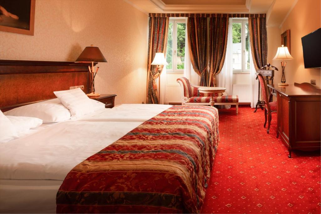 В самом сердце курортной зоны, напротив Мельничной Колоннады, в обрамлении исторических красот Карловых Вар, расположился Boutique Spa Hotel Aquamarina. Наш отель приглашает Вас в полной мере насладиться отдыхом и получить максимальную пользу для вашего здоровья! Отель предлагает 24 номера различных категорий + 2 апартаменты в соседнем здании. Каждый из гостиничных номеров оснащен: Электронным замком / Индивидуальными регуляторами тепла / мини-баром / широкоформатным LCD телевизором и спутниковым телевидением с русскоязычными каналами / сейфом / матрацами класса ”люкс” / портьерами „blackout“ / автоматическими выключателями электричества / прямым телефоном / Wi-fi Интернетом / феном / косметическим зеркалом / душевой кабиной или ванной Номера с видом во двор оборудованы мебелью производства всемирно известной итальянской компании ”SCAPINI”. В номерах с видом на колоннаду — авторская мебель, изготовленная чешскими художниками и мастерами из американской вишни.
