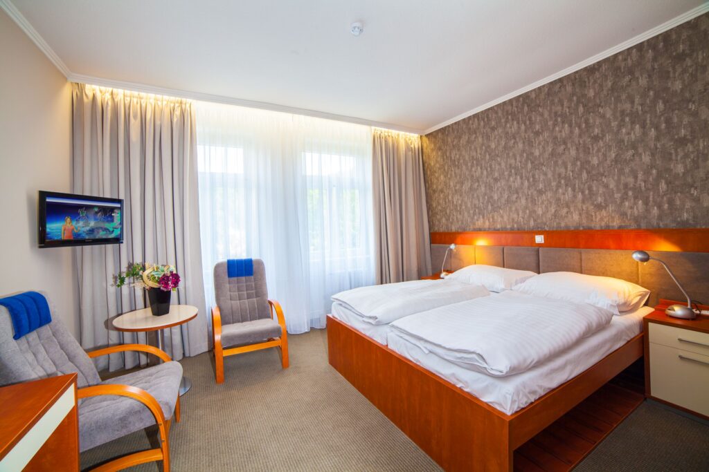 Здание санатория «Конкордия» расположено примерно в 80 метрах от главного здания спа-отеля «Кривань». Помимо стандартных услуг, санаторий «Кривань» предлагает ряд дополнительных услуг для полного удовлетворения и комфорта наших гостей. Лечение и питание для клиентов, проживающих в санатории, предоставляются в спа-отеле «Кривань».