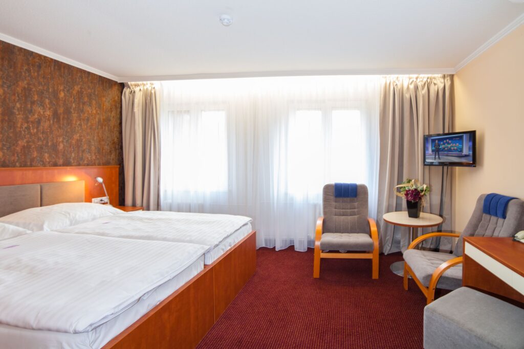 Из номеров с видом на «Парки Дворжака» открывается прекрасная картина зелени и впечатляющей парковой колоннады.