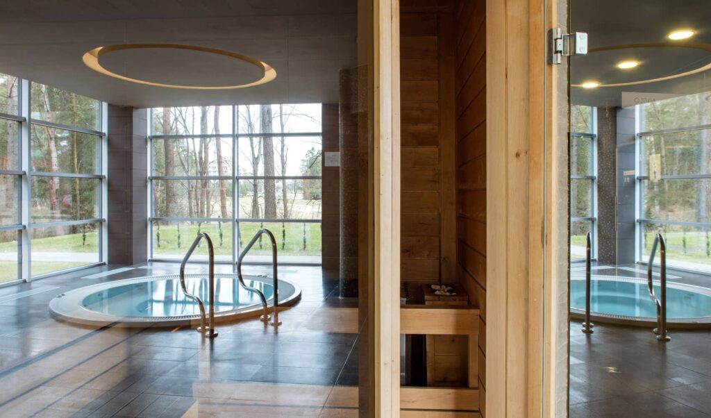 Тем, кто ищет качественный отдых в Друскининкае, мы предлагаем бассейн с саунами, расслабляющие и лечебные процедуры, массажи, а также сбалансированное питание в ресторане. Спокойная атмосфера соснового бора позволяет восстановить силы и улучшить самочувствие.